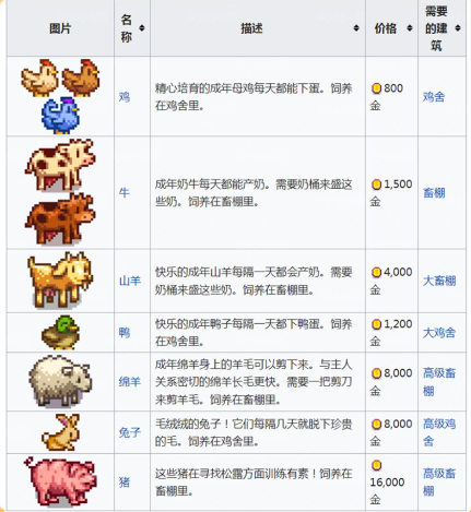 在升级、建造畜棚期间,玛妮不会出售牲畜;在支付之前,玩家可以看到牲畜的“颜色(鸡和牛有好几种颜色)。