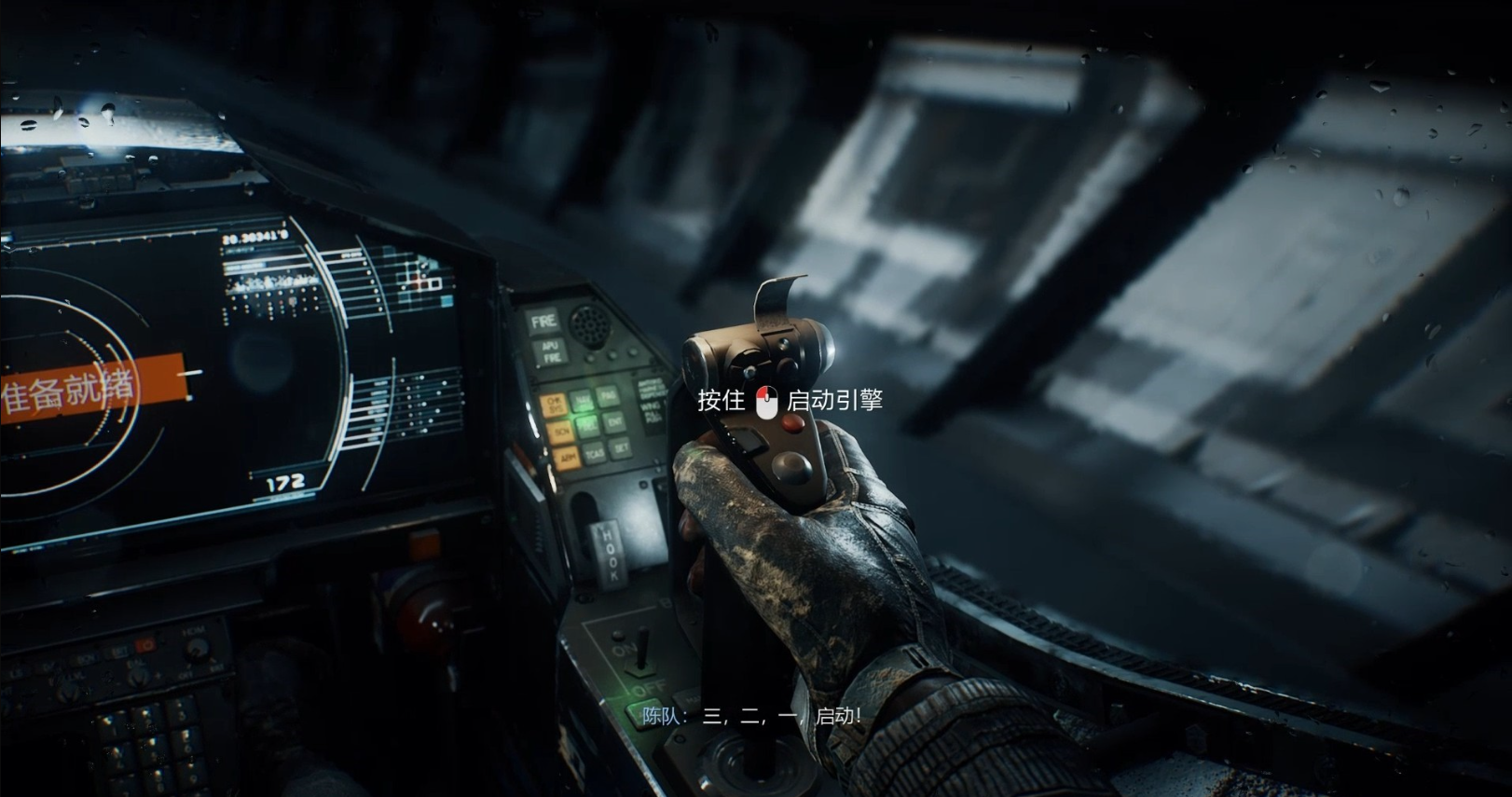 跟随陈队的命令,长按鼠标左键启动飞机引擎。