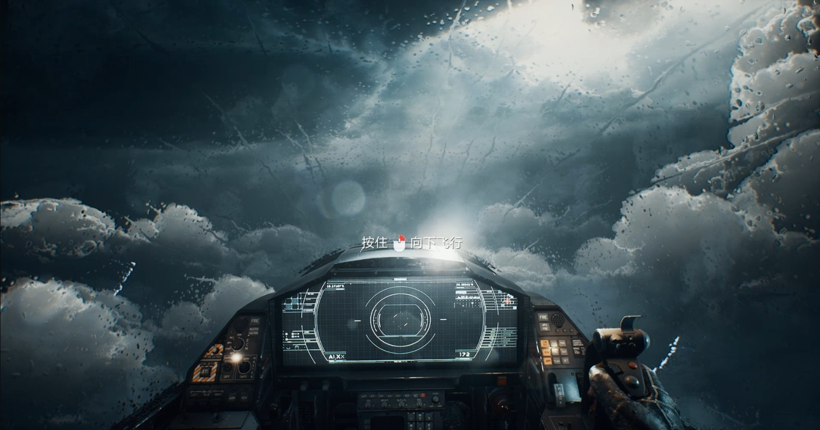 到达任务地点附近时长按鼠标右键降低飞机高度。