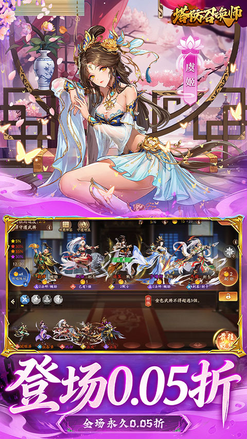 塔防召唤师破解版是一款将三国史诗与国漫美学深度融合的3D策略卡牌塔防手游。此版本为折扣版,玩家可享受0.05折优惠福利。游戏不仅保留了其高品质的3D国风视觉体验和宏大的三国征战世界,更以颠覆性的福利体系,让玩家能够以极低的成本体验到招募名将、攻城略地的快感,开启了一段前所未有的轻松称霸之旅 。