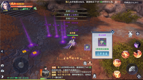零束缚的成长体验:游戏打破了传统仙侠手游“重肝重氪”的束缚。没有强制性的任务链,取而代之的是无尽的开放地图供你自由探索,配合离线挂机升级机制,让上班族也能轻松玩转。
