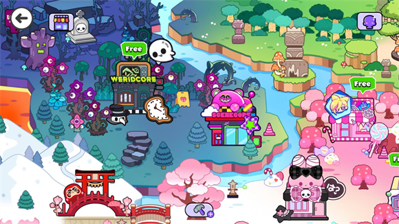 多元主题建筑与场景:小镇拥有丰富多样的主题建筑,如雅致的古风庭院、甜蜜的奶茶店、独特的扎染店,甚至是充满个性的“痛屋”。近期还新增了古堡囚牢、研究所等新场景,满足你的各种打卡和探索欲。