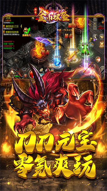 2、打宝赚钱乐趣:爆出的装备可以回收金币或直接交易给其他玩家,体验打宝赚钱的快感。