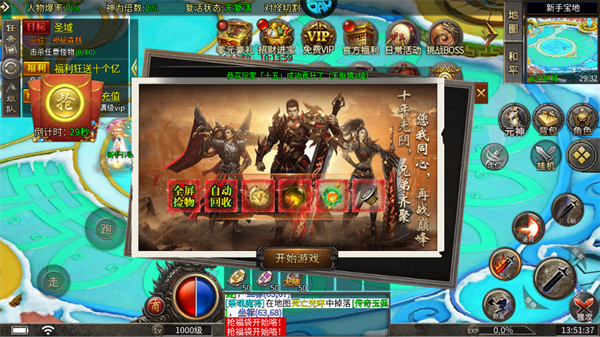 初始上线时即可领取自动捡物和自动回收功能。开启后,系统会自动捡取掉落的装备,并回收换取金币,成为最基础且持续的资源来源。让你在挂机时轻松积累财富。