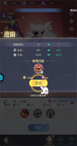 英雄每升20级即可进阶一次,每次进阶都能提升大量数值。