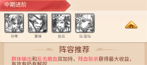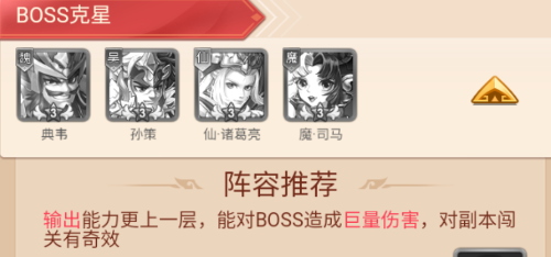 阵容特色:输出能力更上一层,能对BOSS造成巨量伤害,对副本闯关有奇效。