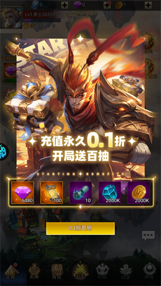 创世纪神(0.1折送2048抽)是一款西方神话题材的放置卡牌策略手游,游戏以希腊、北欧、埃及等神话体系为背景,让玩家扮演一名被众神选中的凡人,招募宙斯、奥丁、拉、雅典娜等神话英雄,组建自己的神祇军团,对抗邪恶势力,争夺神界霸权。所有充值项目均享受0.1折的超低折扣,同时新玩家登录即送2048抽的超豪华福利,让新手可以直接抽到爽,快速组建满星阵容。