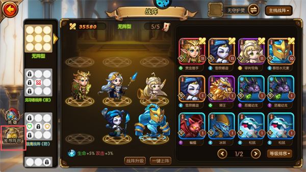 可自由搭配英雄阵容,激活阵营羁绊与属性加成,还能查看推荐阵容快速上手。