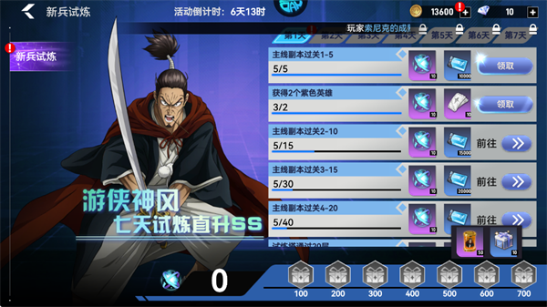 2、新手试炼中连续七天完成任务可以获取满级进化游侠神风。