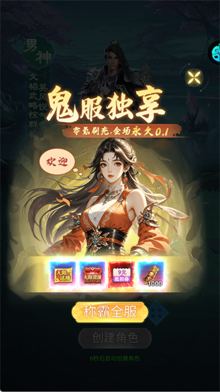 进入游戏后,先领取角色创建页的无限送抽、无限资源、9元抵扣券等福利,利用0.1折优势,小额投入即可获得超高回报。