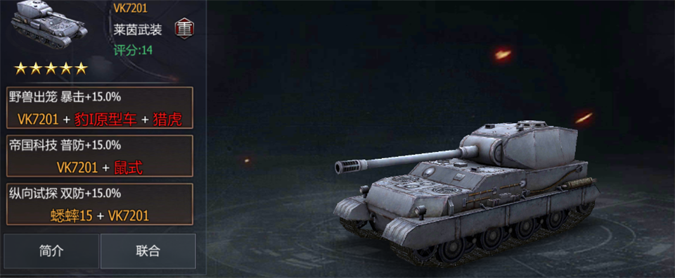 技能伤害高,对敌方群体进行技能打击针对歼击车效果极佳。