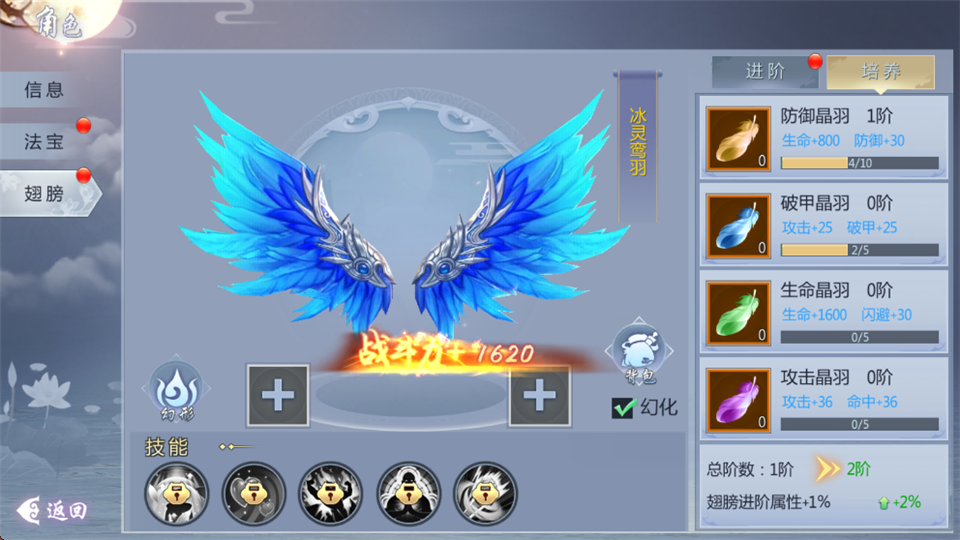 消耗翅膀晶羽可提升翅膀属性,提高翅膀进阶数。