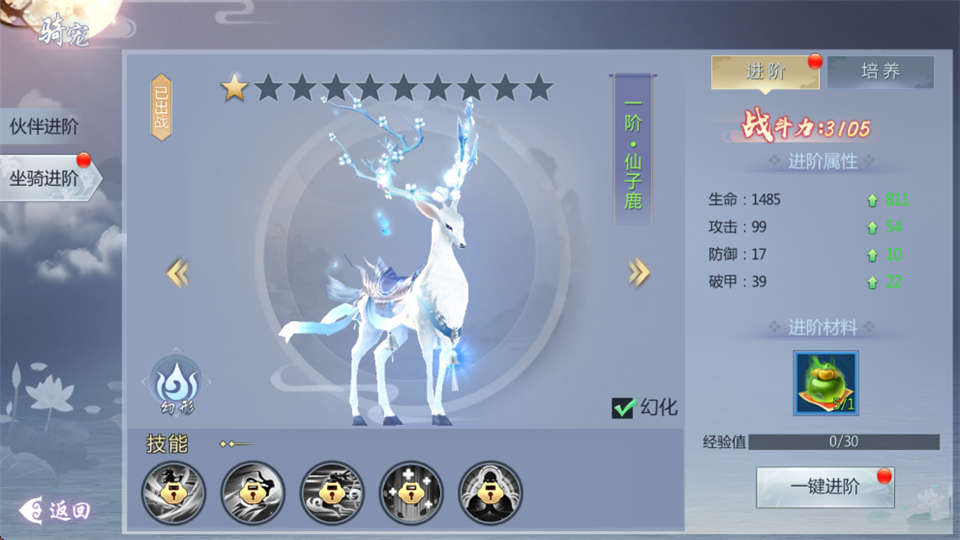 进阶提升宠物各方面属性,为角色战斗辅助。
