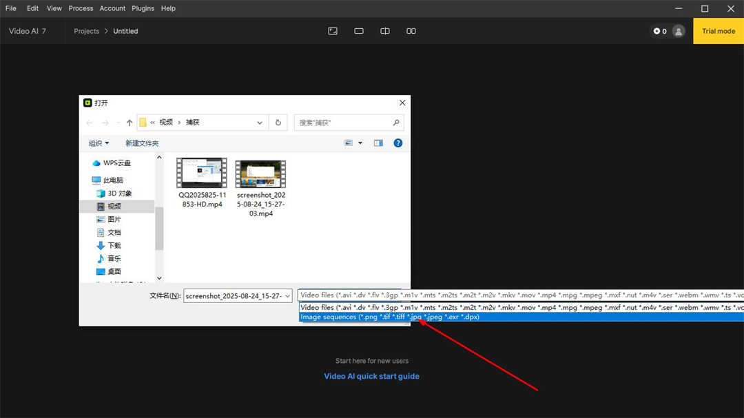 3、在导入文件夹中,确保在右侧下部从“视频文件”更改为“图像序列”。