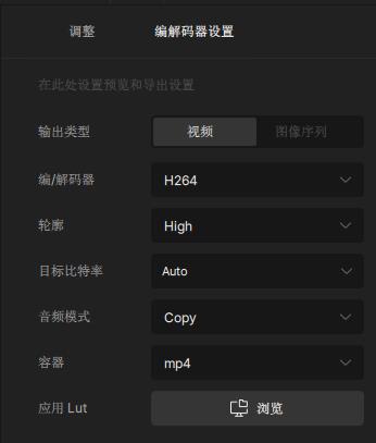 8、选择导出的编码器、容器和音频选项。