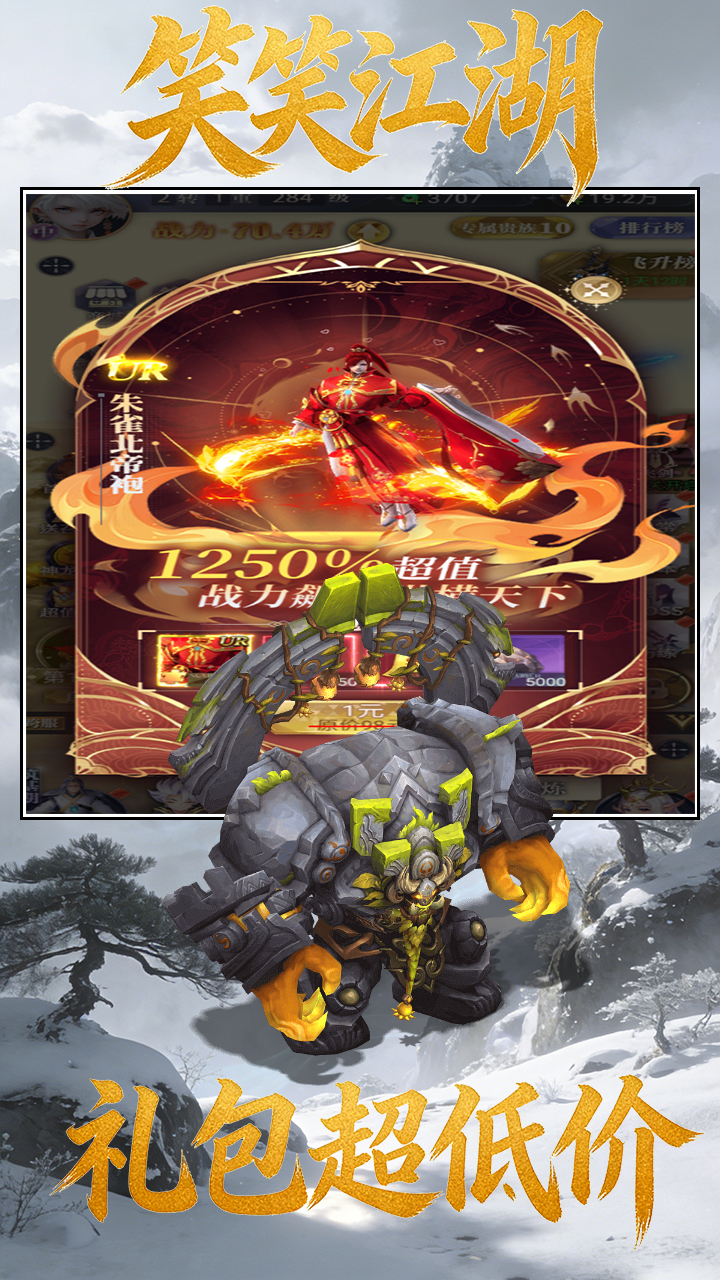 笑笑江湖(1折内置免费版)是一款融合了多文明神话元素的创新型卡牌策略类型手游。此版本为1折免费折扣版,可享受1折充值优惠,并且内含大量福利。它打破了传统仙侠题材的界限,构建了一个名为万界墟的宏大舞台。在这里,大罗金仙与雷神索尔可以并肩作战,西王母与雅典娜也能上演智慧交锋。
