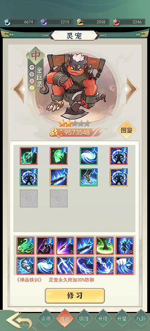 2、法宝升级优先升级修为法宝,因为游戏里太白的获取很少,所以有些法宝可以不升级。