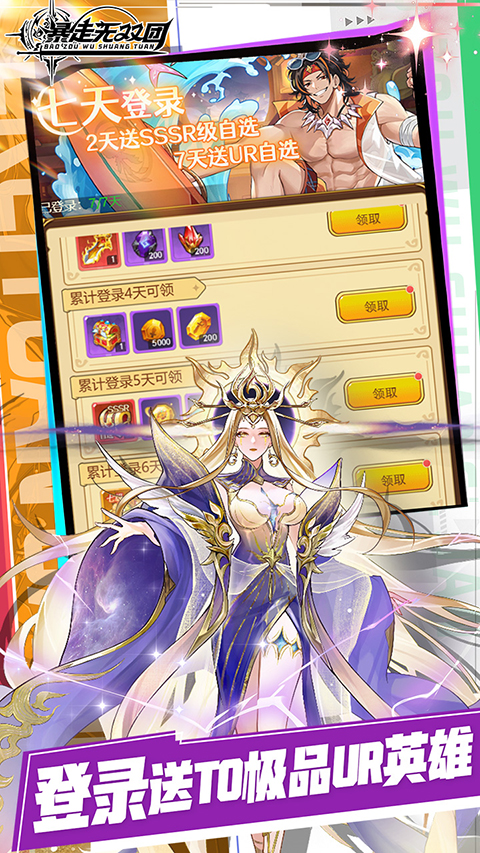 开局豪华大礼:创角即送核心英雄(如伊西丝)、专属武器及1000元充值卡,开局就送“神装”和“神将”,前期推图毫无压力。