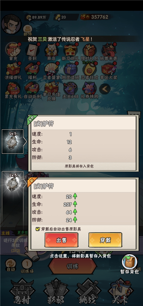 穿戴开箱开出的高阶装备,提升速度、生命等全方位属性。
