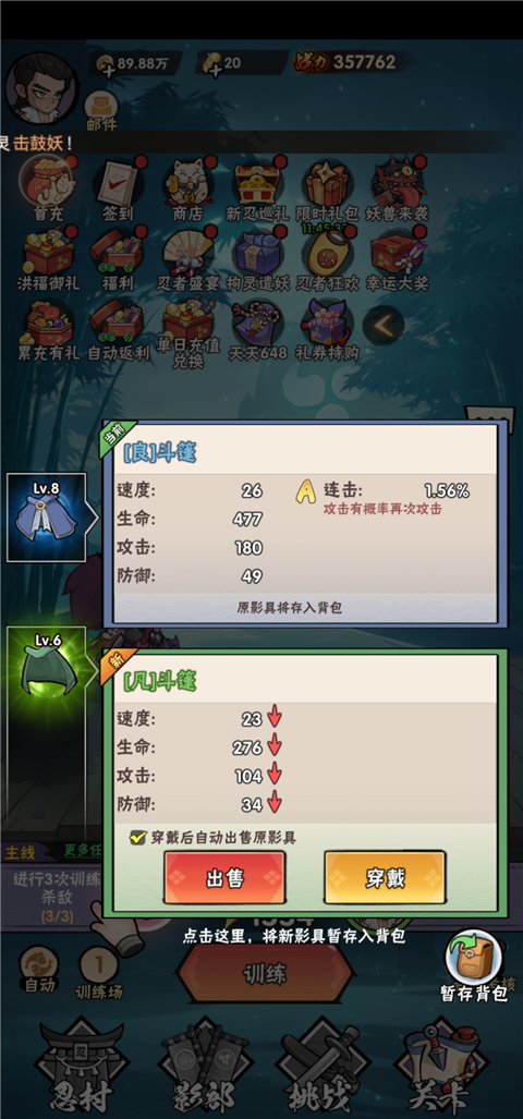 若是开箱出来的装备不如现在穿戴的,直接出售。
