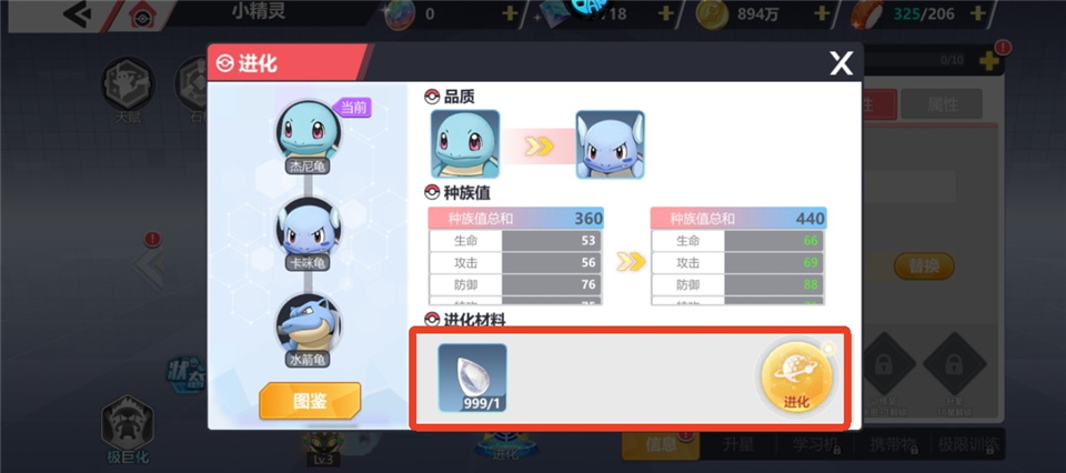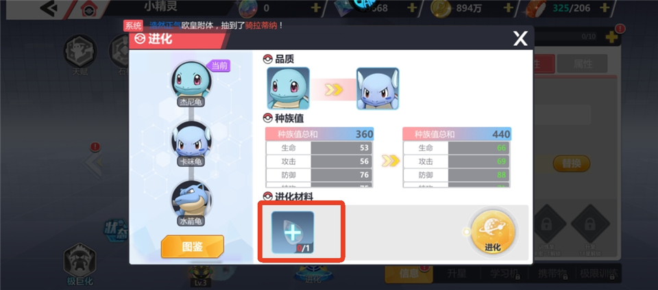 1、在进化页面会显示需要进化材料的数量,点击进化材料。