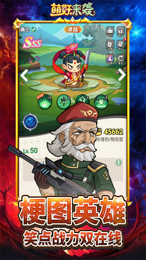 萌妖来袭是一款以僵尸题材为背景的卡通风格放置卡牌手游,以轻松诙谐的卡通画风、萌趣可爱的角色造型以及爽快解压的战斗体验为核心,将“暴揍僵尸”的爽感与“收集萌妖”的养成乐趣完美结合,让玩家在欢乐的氛围中享受策略搭配与碾压敌人的双重快感。