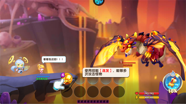 怒气值攒满后立即释放【大招】,瞄准BOSS弱点打出爆发伤害,是快速通关的关键。