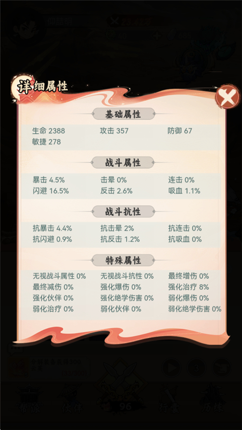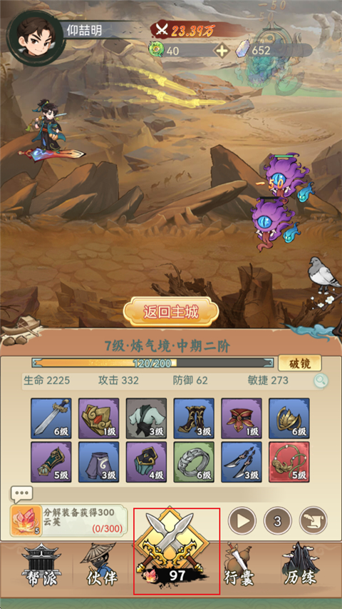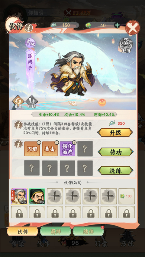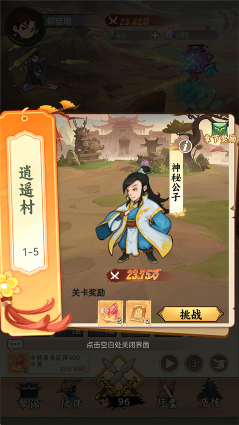 5、当玩家拥有侠客后,点击伙伴可进行上阵进行升级;