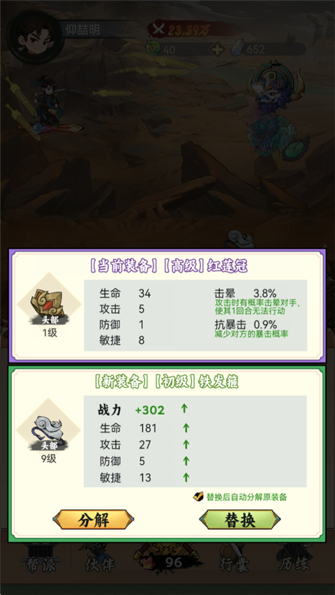 2、装备品质有好有低,品质好直接装备相反则分解;