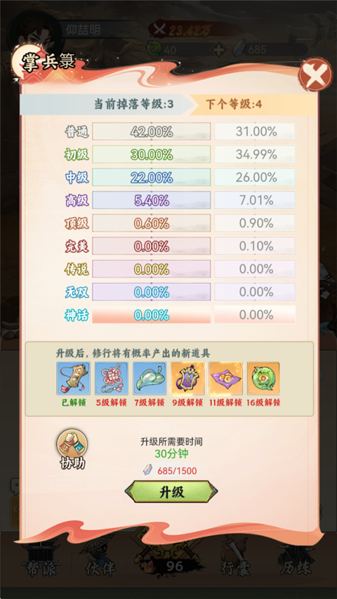 4、掌兵箓升级需要消耗资源,可通过挑战历练获取;