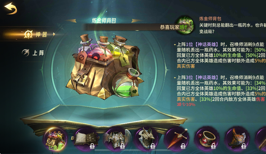 5、游戏中还有各种各样的神器,在战斗过程中,这就相当于召唤师使用的各种技能,有主动,有被动,玩家可以根据自己阵容灵活搭配。