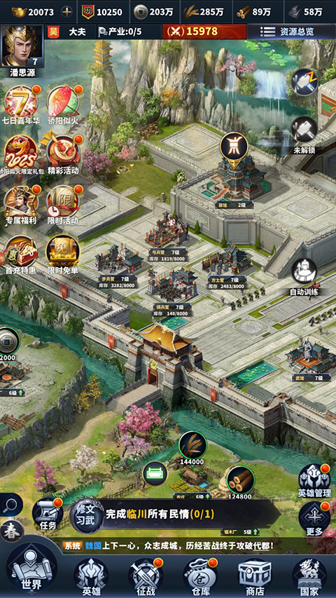 2、多维度国战,全服实时对抗:摒弃传统SLG的“单机攻城”模式,支持千人同屏实时交锋。玩家可自由组建军团,争夺城池、关隘与资源点,通过外交、谋略与武力实现一统天下的霸业。